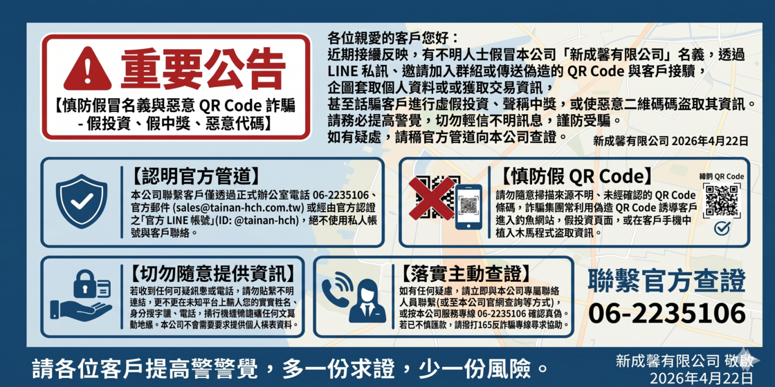【重要聲明】慎防假冒名義與惡意QRCode詐騙